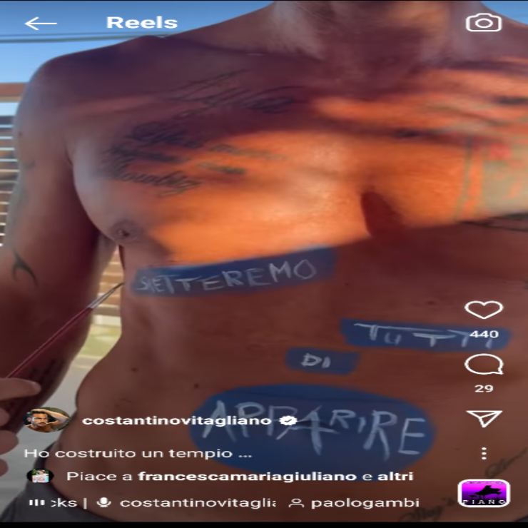 Nelle immagini, diffuse sul web tramite un Reel condiviso su Instagram si legge: “Ho costruito un tempio di benessere. Smetteremo tutti di apparire”.